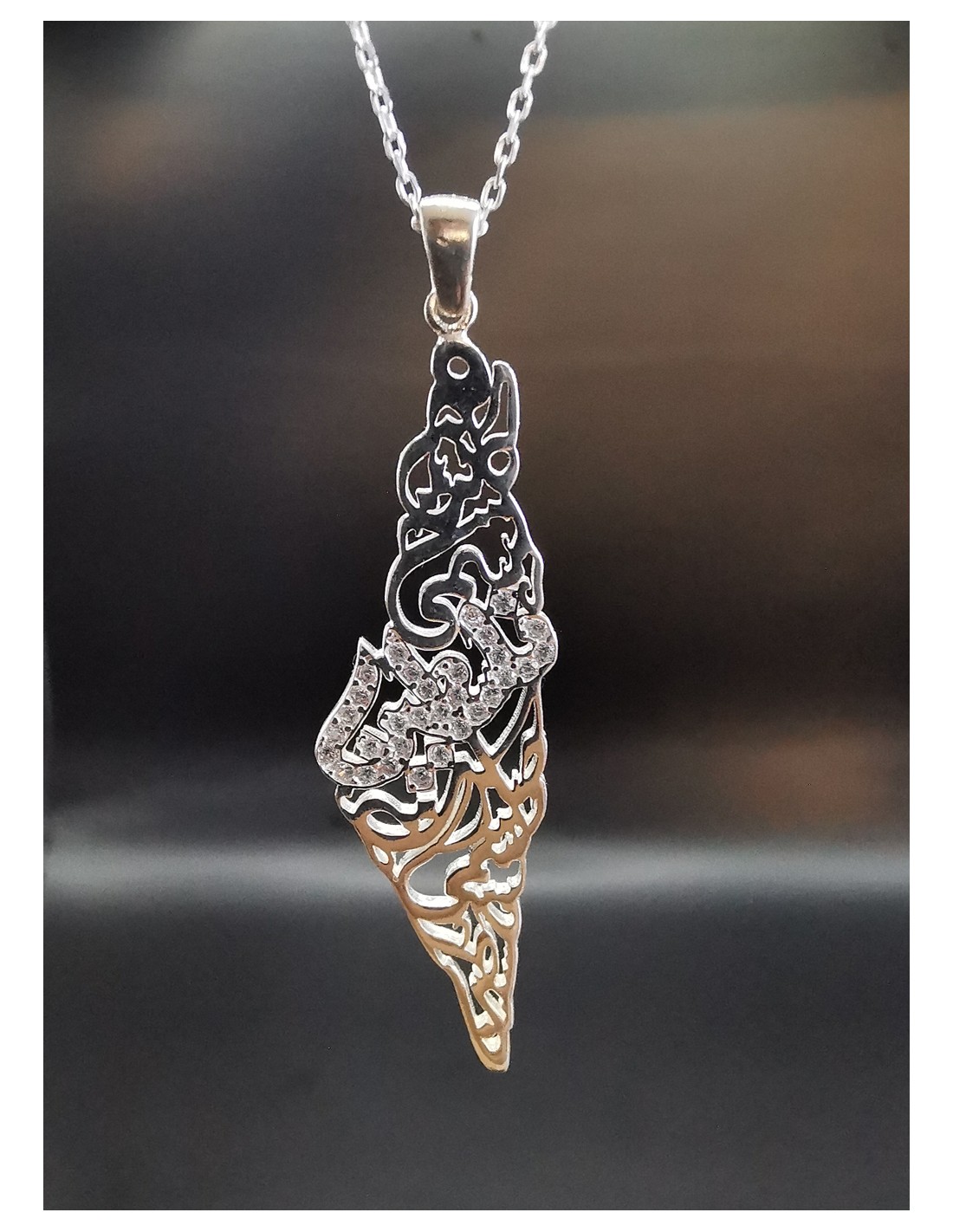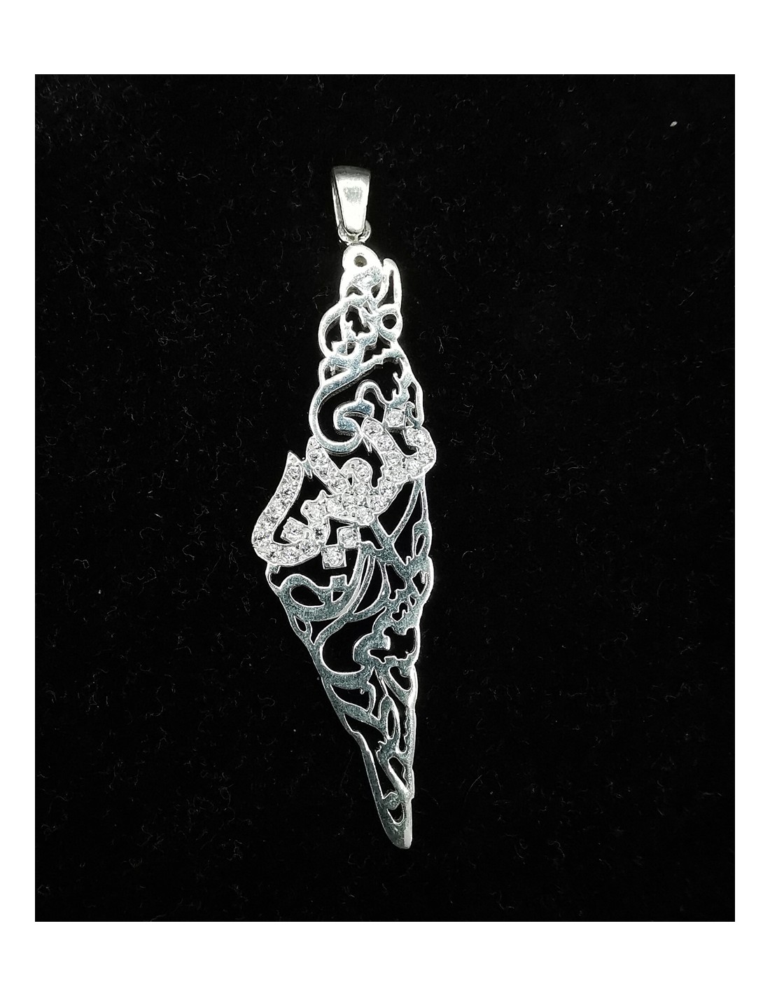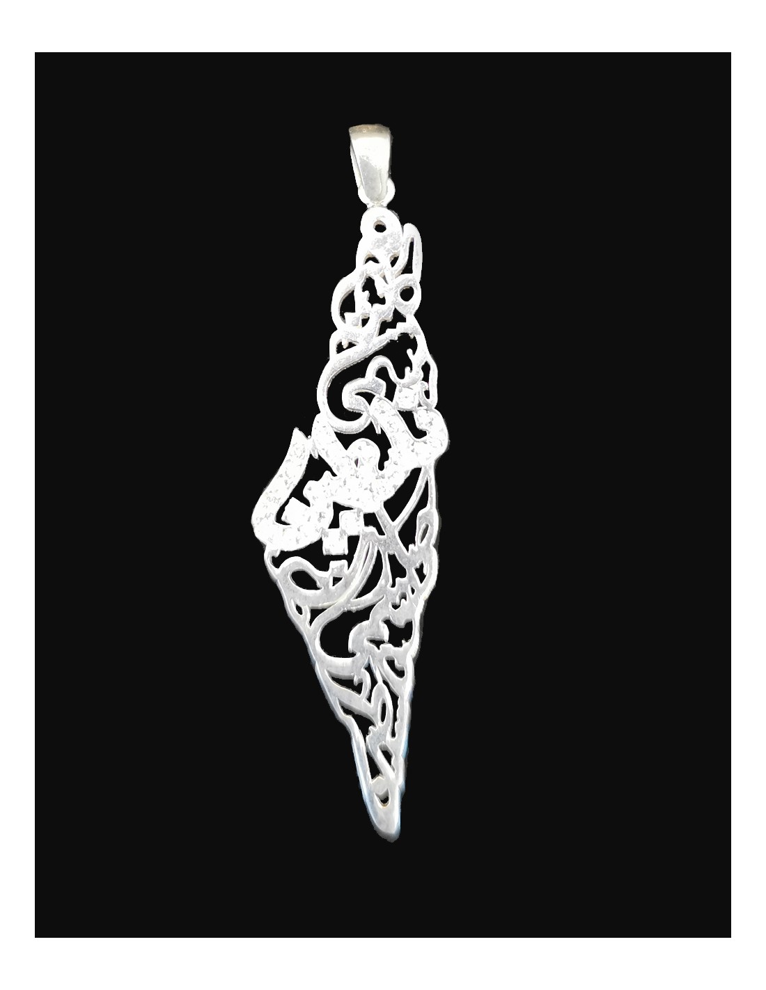 قلادة خريطة فلسطين مع أسم فلسطين بالخط العربي، نقش كريستال، قلادة فضية مجوهرات نسائية