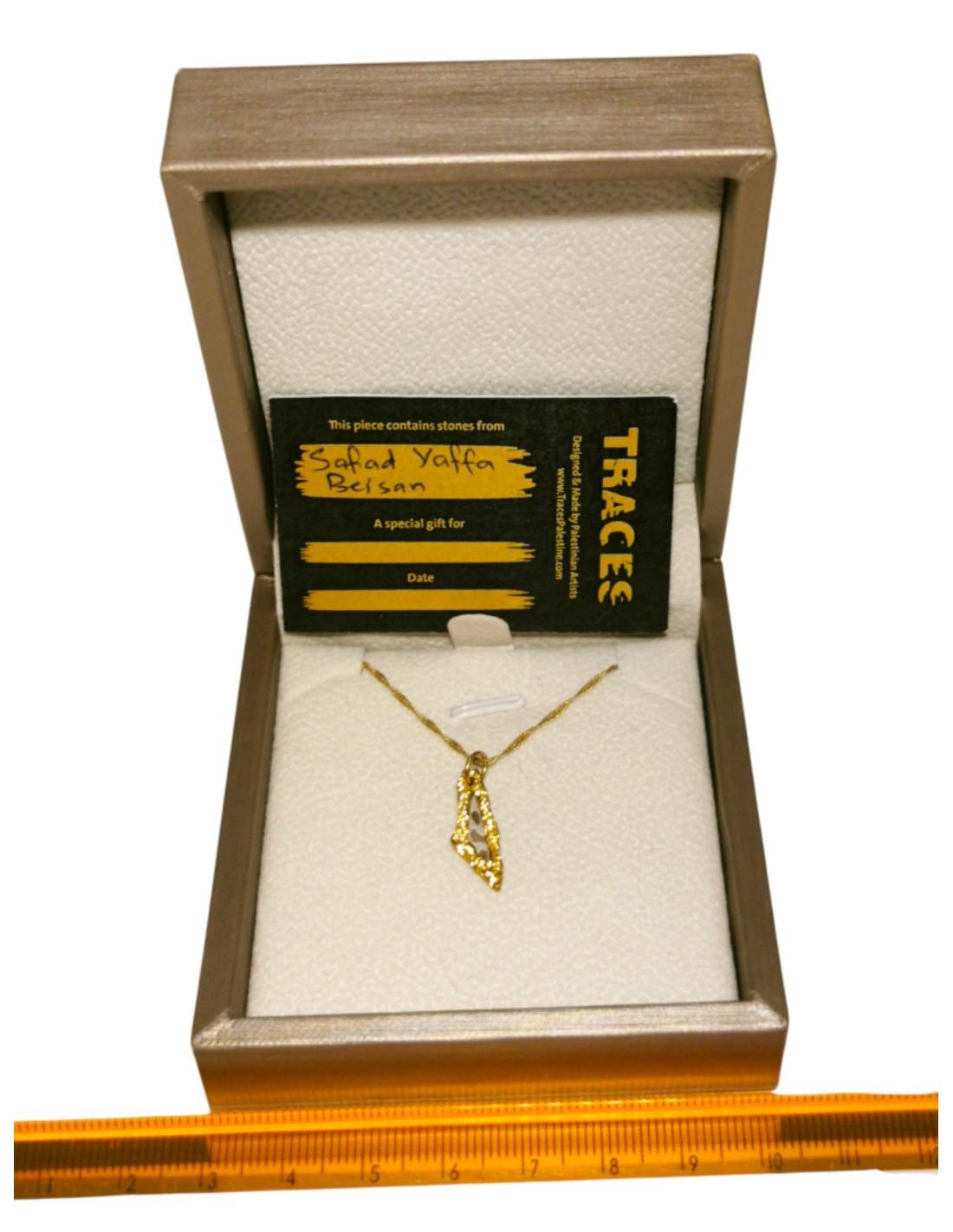 كل قطعة تُصنع يدويًا على أيدي فنانين فلسطينيين وتحتوي غالبًا على أحجار طبيعية من مدن فلسطينية مختلفة، للحفاظ على القصص والذكريات والهوية الثقافية في كل تصميم.