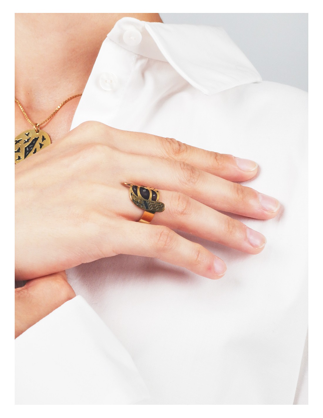 Der Ring ist verstellbar, wird von palästinensischen Künstlern in Ramallah handgefertigt und ist in Sterlingsilber (925) oder vergoldetem Silber erhältlich – ein raffiniertes Statement für Kultur, Handwerkskunst und Stolz.