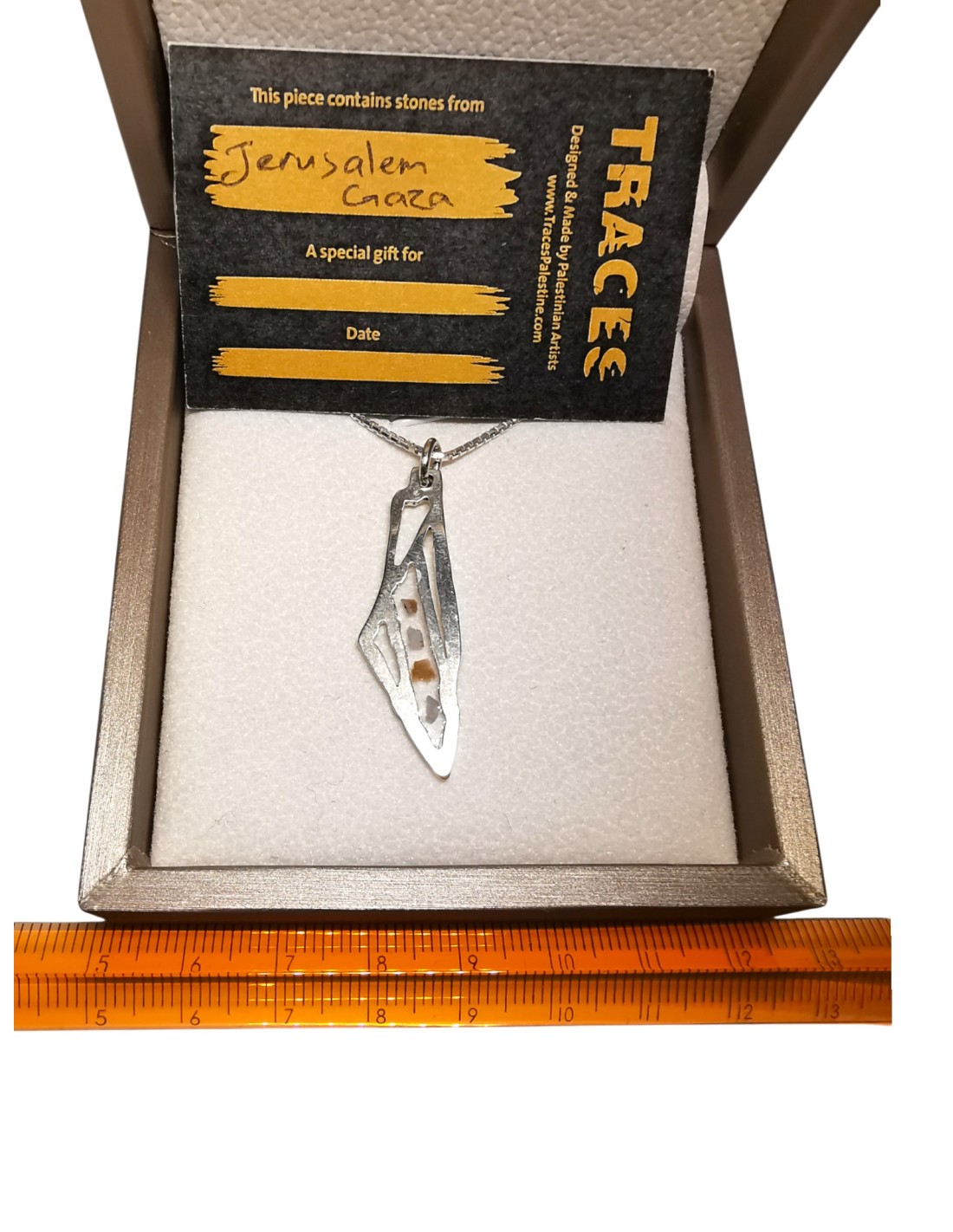 Traces of Palestine ist eine faire, künstlerische Initiative mit Sitz in Ramallah, die Menschen durch symbolischen Schmuck mit der palästinensischen Geschichte und Kultur verbindet.