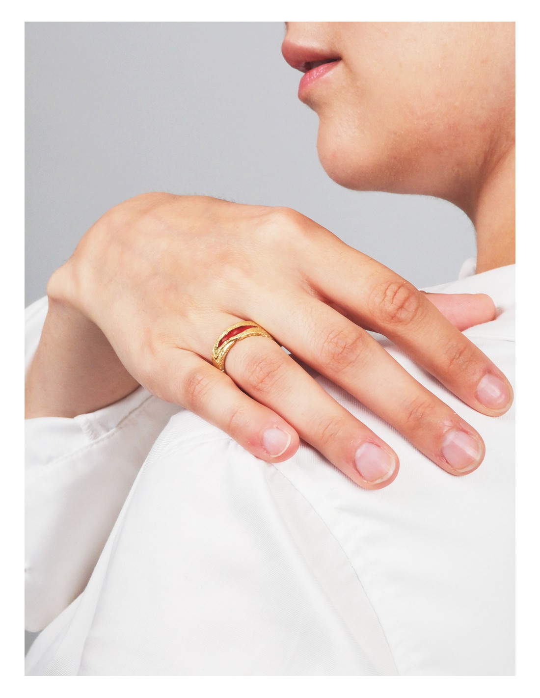 Der Ring ist verstellbar und wird von palästinensischen Künstlern in Ramallah handgefertigt. Er ist in Sterlingsilber (925) oder vergoldetem Silber erhältlich und steht für eine vollkommene Verbindung von Kunst, Handwerkskunst und kulturellem Stolz.