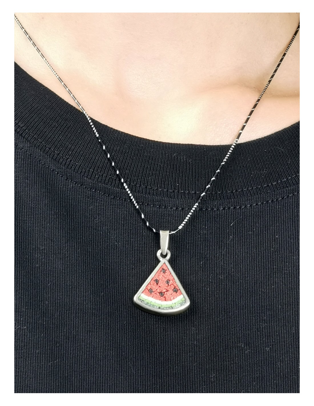 Watermelon Slice Necklace – Made of Silver and Stones from Jerusalem