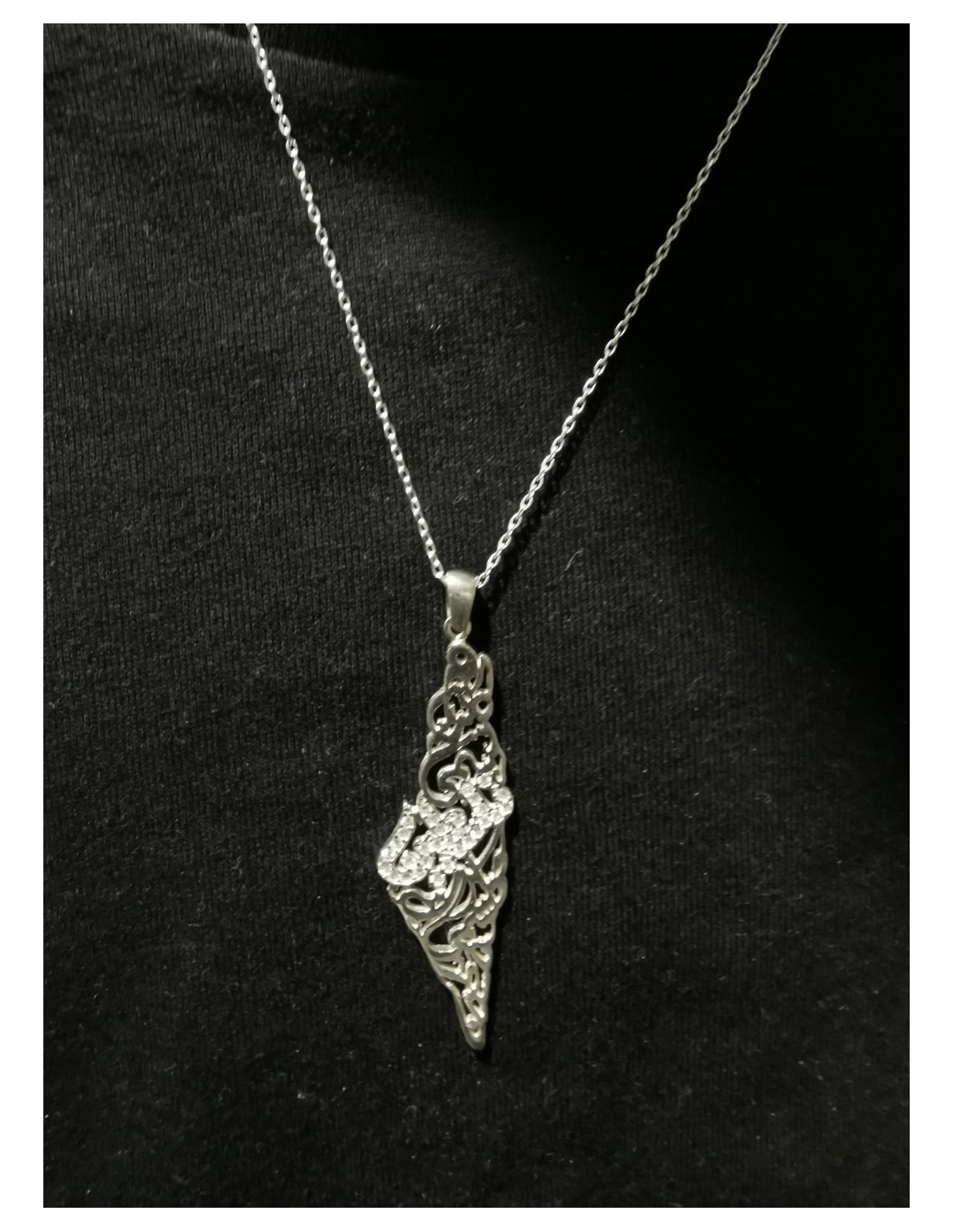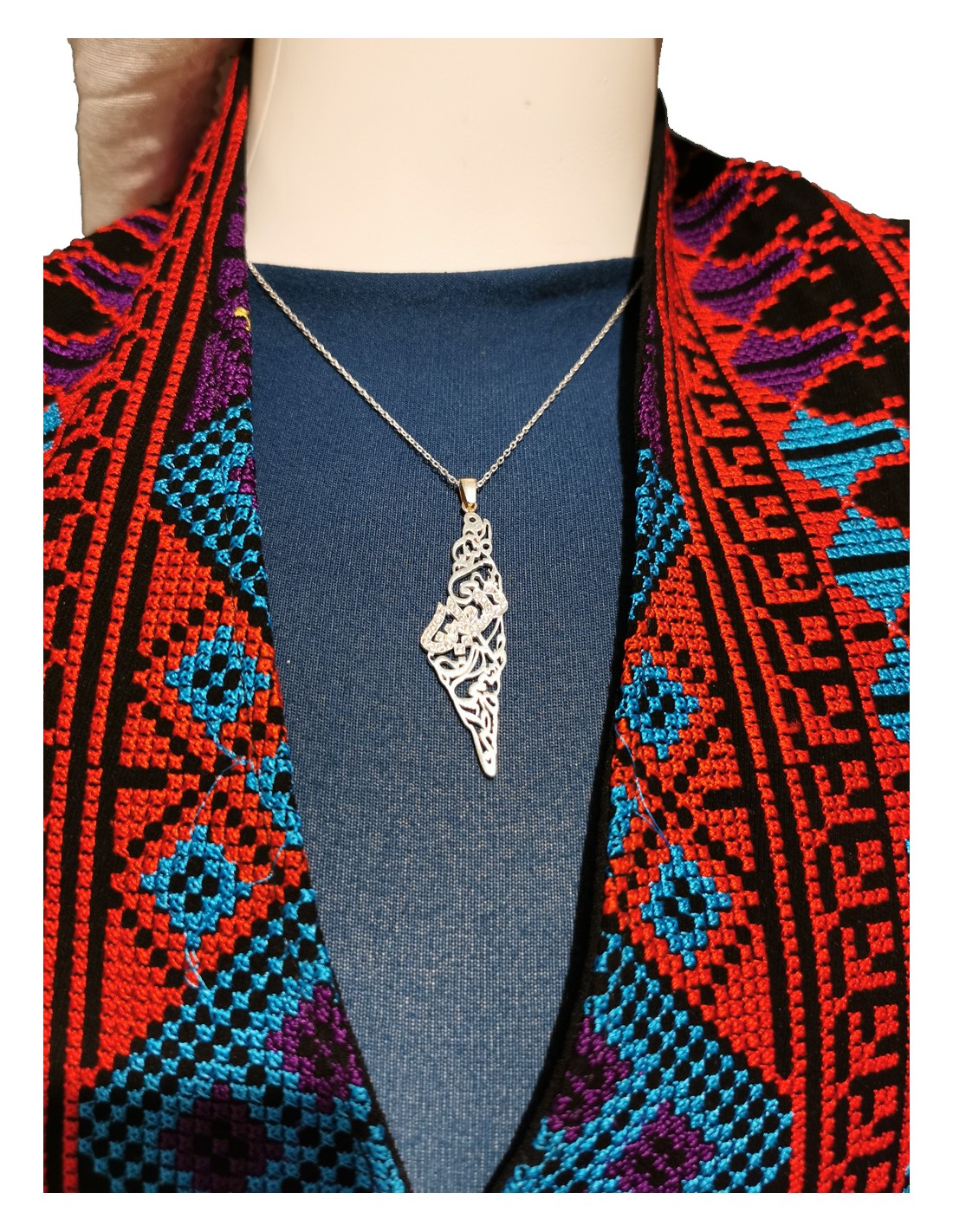 Carte de Palestine avec calligraphie arabe de la Palestine, inscription en cristal, collier bijou en argent pour femmes
