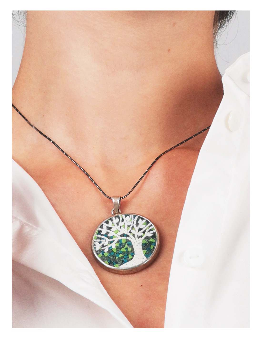 Collier Arbre d’Olivier - Arbre de Vie – en Argent et Pierres de Jérusalem