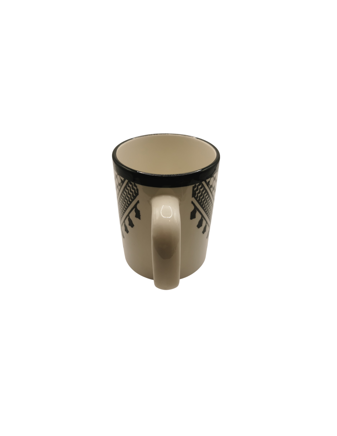 Mug en céramique décoré du motif du keffieh, fabriqué à la main à Hébron selon un savoir-faire artisanal palestinien. Inspiré du célèbre foulard traditionnel palestinien, il allie patrimoine culturel et élégance pour un usage quotidien.