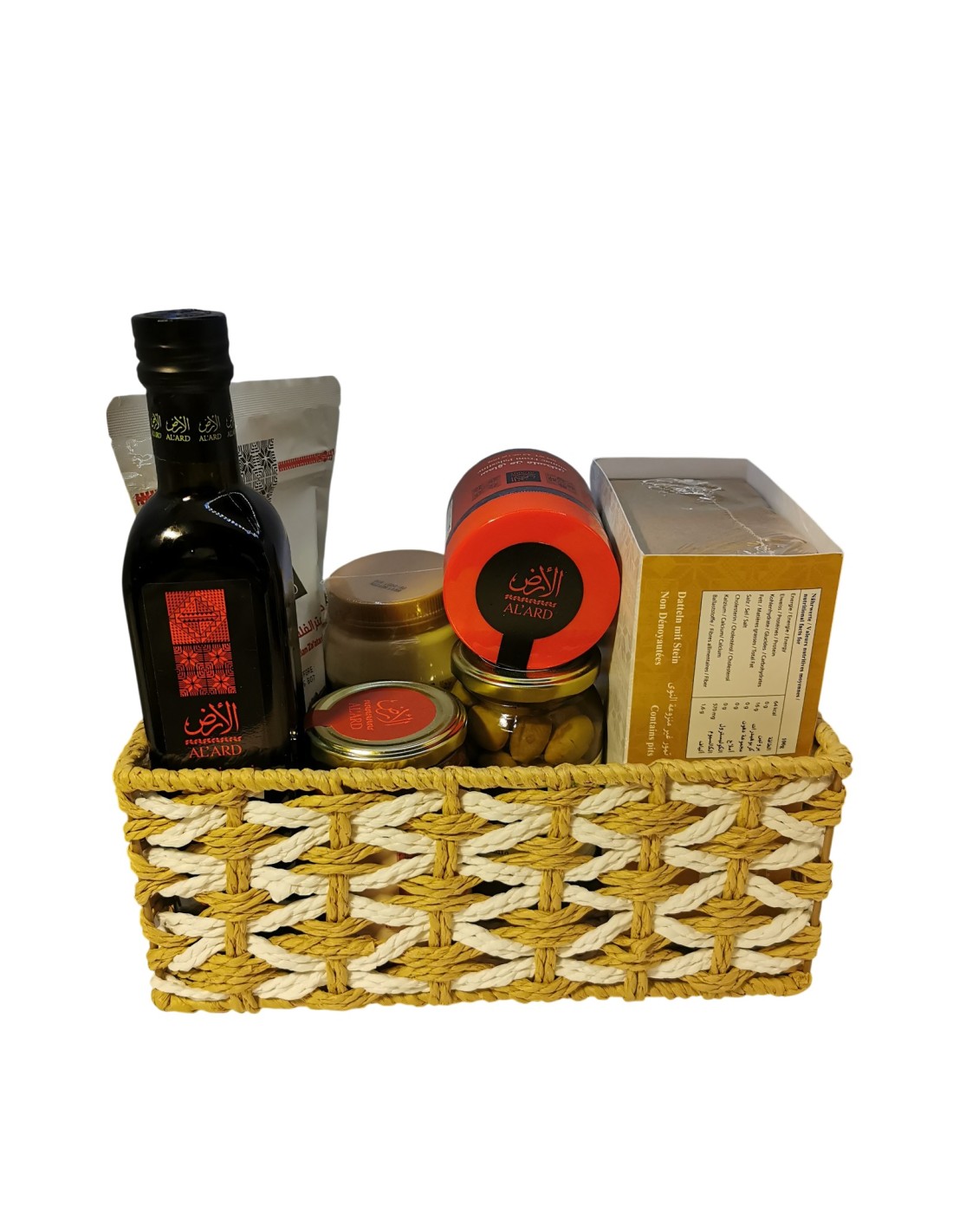 Ce panier met à l’honneur des produits emblématiques de la gastronomie palestinienne, sélectionnés pour leur qualité, leur authenticité et leur goût incomparable.