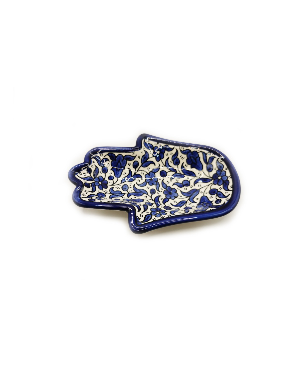 9- Assiette en céramique artisanale palestinienne / Plat forme de la main bleu (12 x 18 cm).